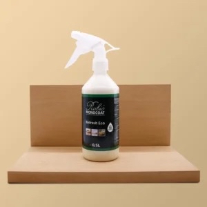 Rubio Monocoat Refresh Eco to gotowy do użycia preparat w sprayu, który odświeża i odnawia drewniane powierzchnie pokryte olejem. Jest idealny do przywracania świeżości meblom, blatom i stołom, które z czasem mogą wyglądać na suche lub zużyte. Łatwy w użyciu: Gotowy do użycia spray, który nie wymaga rozcieńczania ani mieszania. Bezpieczny dla środowiska: Nie zawiera Lotnych Związków Organicznych (LZO). Wszechstronność: Odpowiedni do wszystkich drewnianych powierzchni wewnętrznych, z wyjątkiem podłóg i schodów, które mogą stać się zbyt śliskie po użyciu tego produktu. Rubio Monocoat Refresh Eco to idealne rozwiązanie do odświeżania i konserwacji drewnianych mebli i innych powierzchni, pomagając zachować ich piękno na dłużej. Ta bezbarwna formuła umożliwia łatwe użycie przez właścicieli domów bez zmiany koloru drewna. W miejscach, które wymagają przywrócenia koloru, zalecamy użycie Oil Plus 2C w oryginalnym odcieniu, którym powierzchnia była wcześniej pokryta. Należy pamiętać, że Refresh Eco nie nadaje się do podłóg ani schodów, ponieważ może sprawić, że te powierzchnie staną się zbyt śliskie. Ostrzeżenie! Ściereczki, pady i inne narzędzia nasiąknięte olejem mogą ulec samozapłonowi. Po użyciu należy przed ich utylizacją namoczyć je w wodzie.